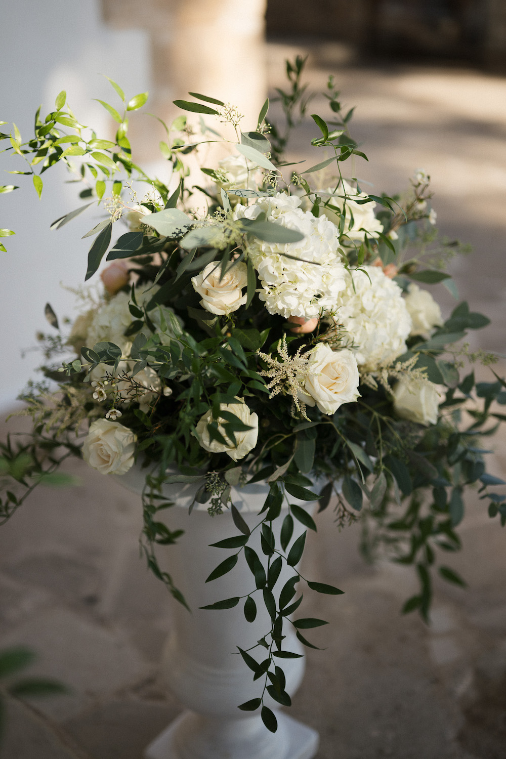 White, sun-soft tones, olive twigs, and clusters of grapes framing a moment that felt timeless.