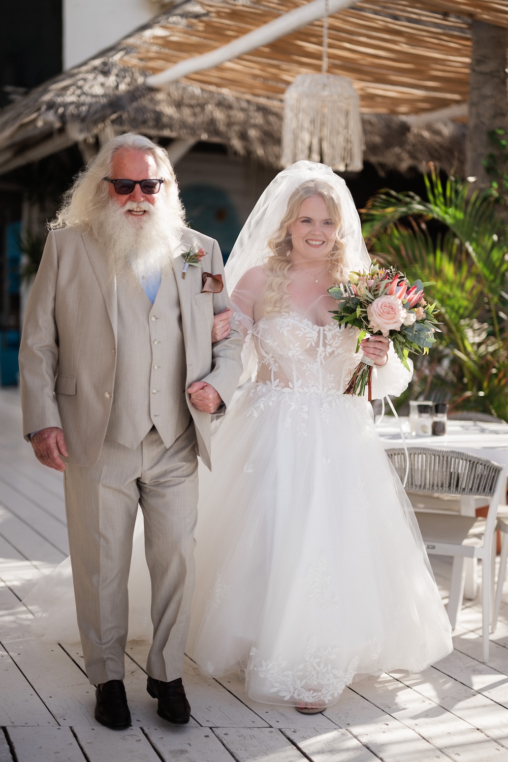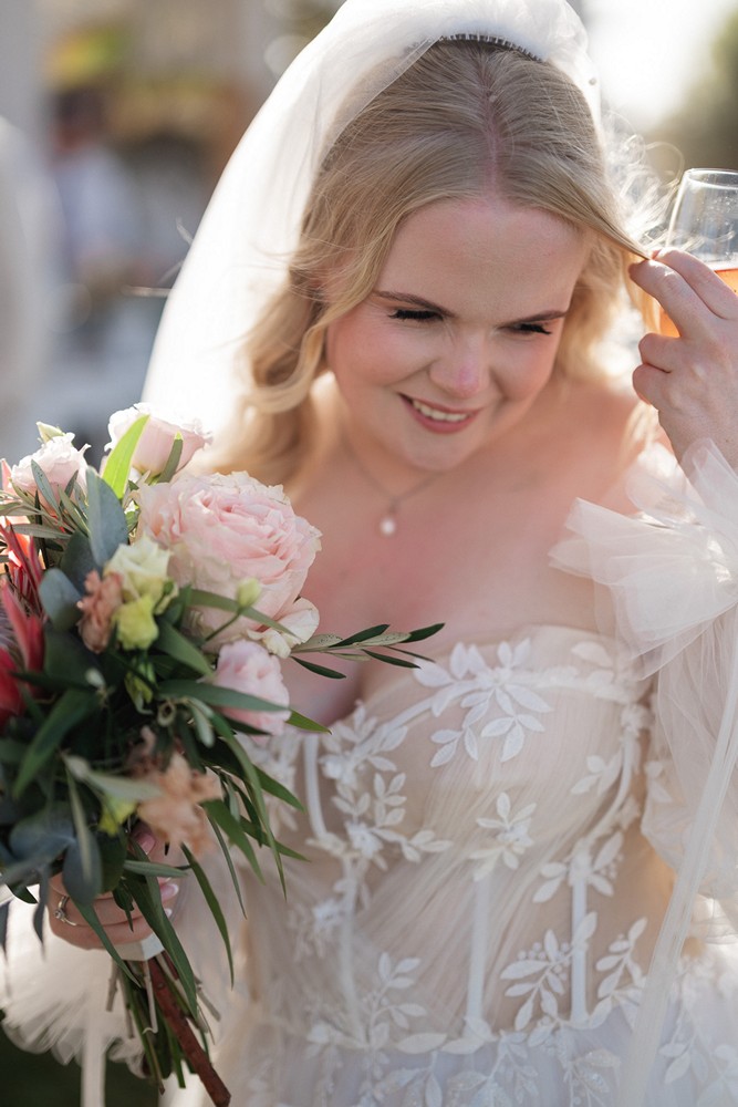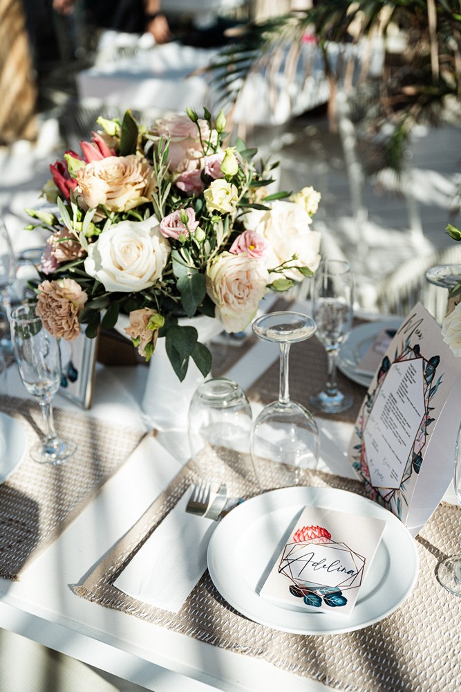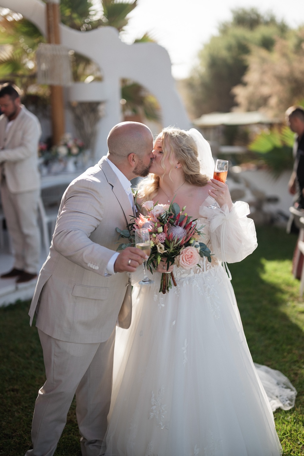 Surrounded by the natural beauty of Western Coast of Chania the couple brought together their unique cultural story—Norwegian roots blended with the bride’s South African heritage. This fusion was elegantly reflected in their choice of the protea flower, a striking and symbolic bloom that added an exotic touch to the celebration.