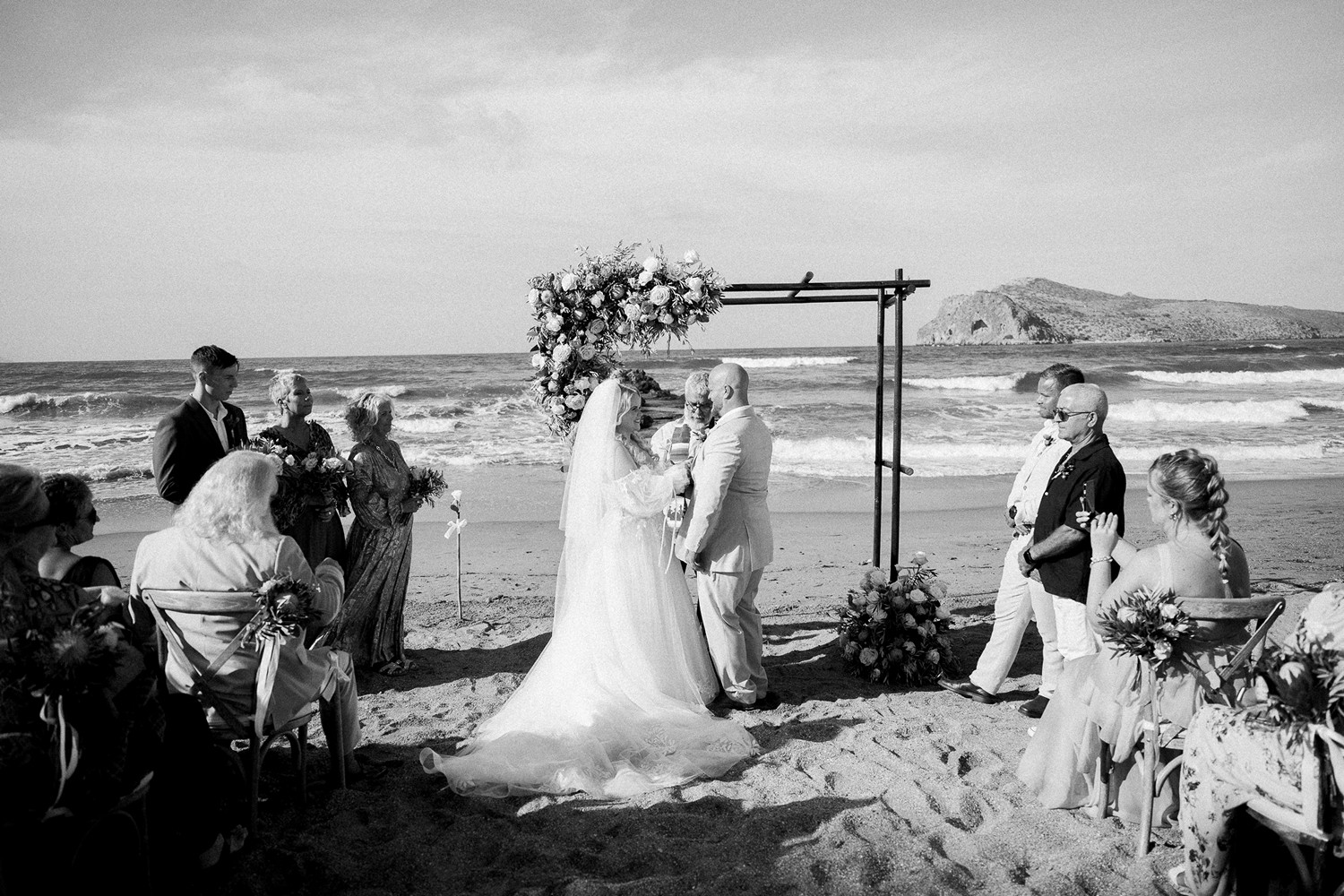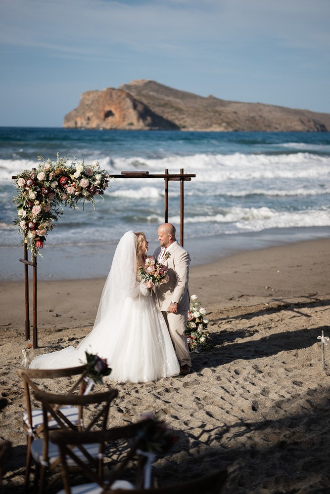 Jane and Mats chose to celebrate their love in a setting that felt deeply personal and effortlessly beautiful—a serene beach just outside Chania, where the rhythm of the sea met the quiet nostalgia of cherished memories. For Mats, Crete held a special place in his heart, as it was where he had spent his childhood summer holidays, making their wedding not only a union of two souls, but also a meaningful celebration Connecting past with presence and future.