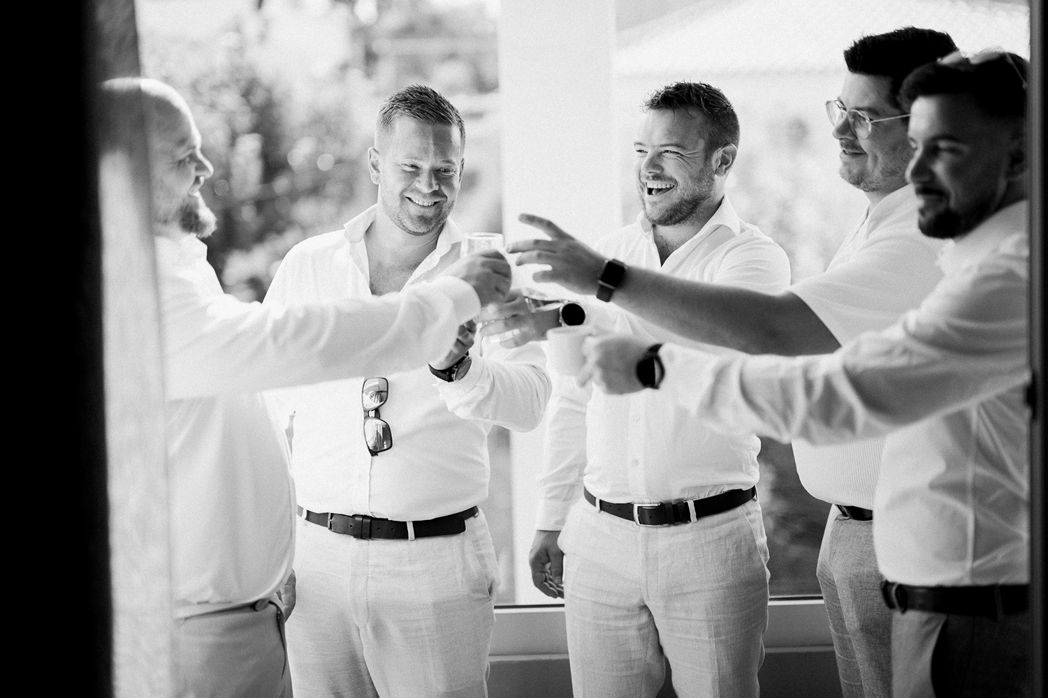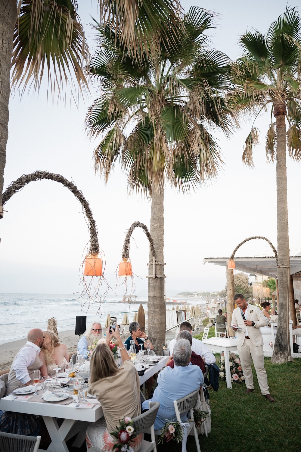 As the sun began to set, guests gathered at a seaside restaurant owned by the couple’s long-time Greek friends—a place filled with warmth, familiarity, and heartfelt hospitality. The reception turned into a joyful evening of laughter, delicious food, and genuine connection, all set against the calming sound of the waves.